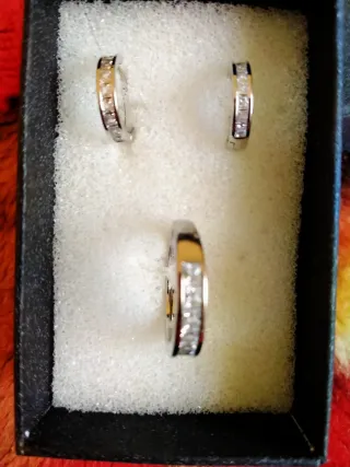 Juego pendientes plateados aro