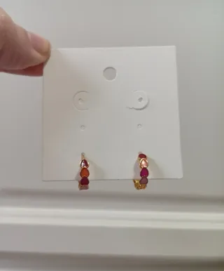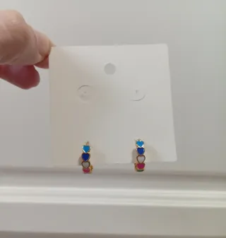 Pendientes de aro con diseño de corazones. - Detalle de corazones en diferentes colores. - Cierre de presión. Nuevos. A estrenar.
