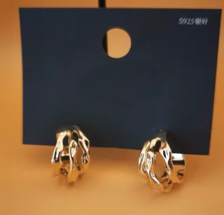 Pendientes Aro irregular Plata Ley Baño Oro 18k