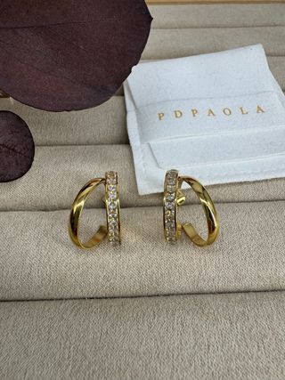 Elegantes pendientes de la marca PDPAOLA. - Diseño en forma de aro. - Detalle de circonitas. - Acabado dorado.
