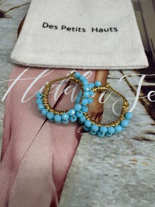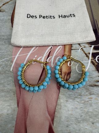 Pendientes de aro de la marca Des Petits Hauts, adornados con pequeñas cuentas. - Diseño de aro. - Cuentas de color turquesa. - Enganche dorado.