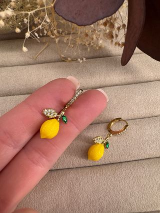 Pendientes con un divertido diseño de limón. - Cierre de aro. - Detalle de hojas y circonitas.