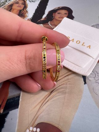 Elegantes pendientes de la marca PD PAOLA con un diseño vibrante. - Acentos de piedras de colores. - Diseño de aro.