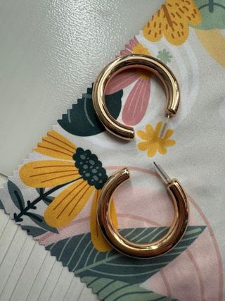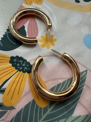 Elegantes pendientes dorados con un diseño de aro grueso. 💎 Están nuevos SIN USAR 📦 Envío: 12/24 h - Acabado brillante. - Cierre de presión.