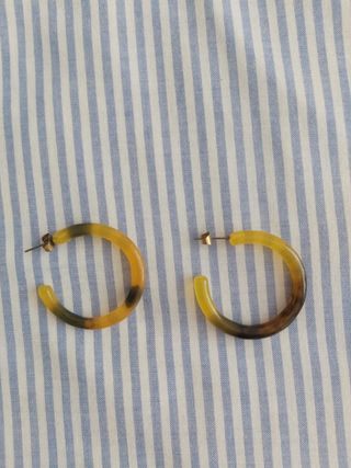 Pendientes de aro de imitación al carey. Son de tuerca