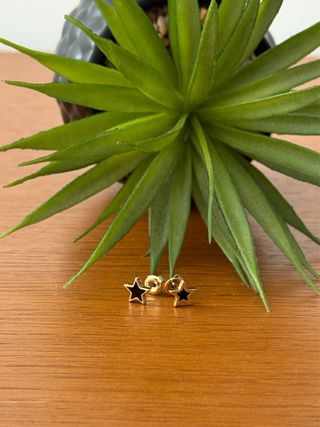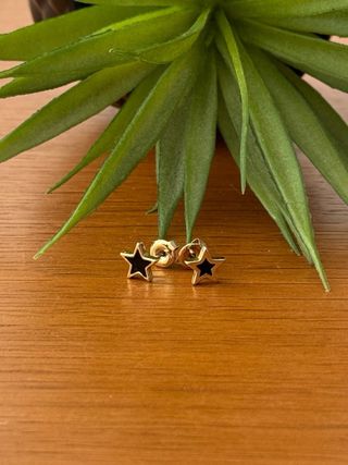 Pendientes de estrellas desiguales de Bimba y Lola. Color negro y bordes dorados. Tamaño: 7mm. Poco uso. NO NEGOCIABLE.