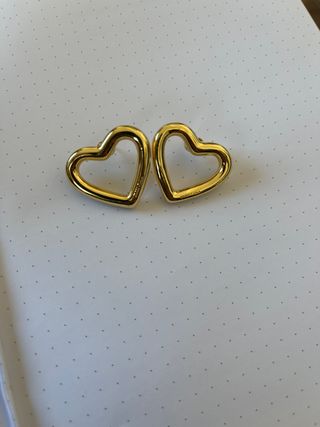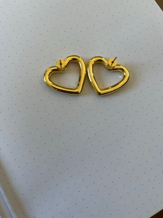 Pendientes con diseño de corazón. - Acabado dorado. - tiene un pequeño roce en el lateral casi imperceptible