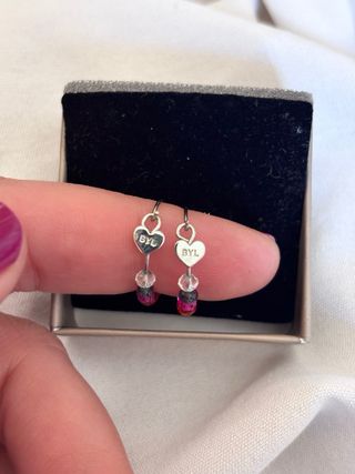 NO SON NEGOCIABLES Pendientes inspiración Bimba y Lola con un diseño circular y un corazón en el centro. No son de marca Nuevos a estrenar - Detalles de letras multicolores. - Cuelgan perlas blancas. - Cierre de presión.