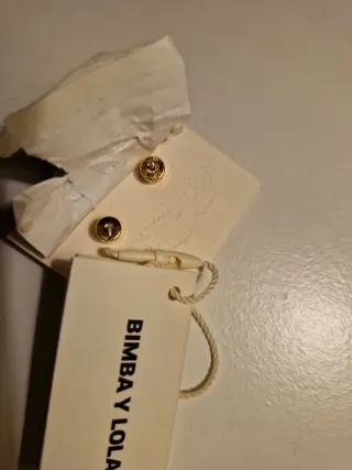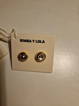Elegantes pendientes de la marca Bimba y Lola. - Diseño circular. - Acabado dorado. Con pedrería Son muy pequeños Están nuevos, incluyo ticket de compra en el corte ingles