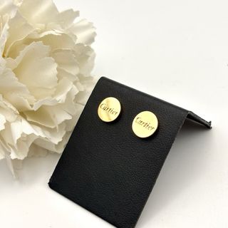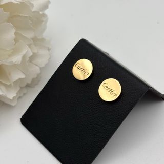 Elegantes pendientes de la prestigiosa marca Cartier. - Diseño circular con el nombre de la marca grabado. - Acabado en tono dorado.