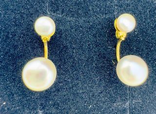 Pendientes de perla cultivada y plata vermeil. Preciosos. Se observa la marca JMA, algo borrosa. Cierre de clip. Uno de ellos el clip esta un poco menos cerrado pero no pasa nada. Gracias por tu confianza.