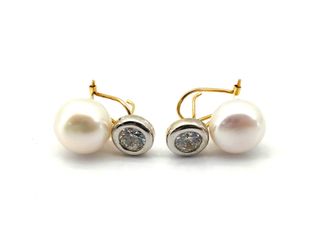Pendientes de oro de 18 kt con perlas cultivadas y diamantes talla brillante. Se adjunta certificado. Whatsapp para consultas: 602 04 27 50 Se hacen envíos express asegurado y certificados. El envío llega entre 1-2 días laborables. Se entrega en caja de lujo y se empaqueta como regalo si lo necesita. Cualquier pregunta no duden en contactar. En el perfil hay muchas más joyas de todo tipo y época. Hacemos joyas por encargo. Se le puedo poner grabado.