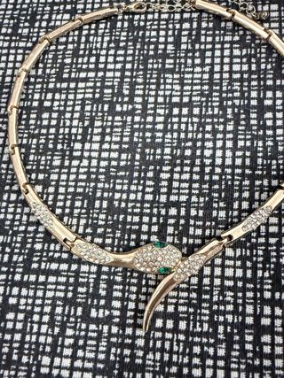 Conjunto de collar y pendientes con diseño de serpiente. - Detalles de brillantes. - Acabado dorado.