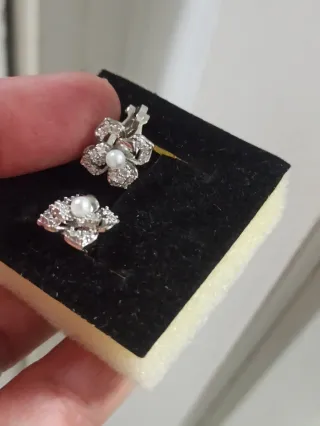 Pendientes vintage plateados con brillantes