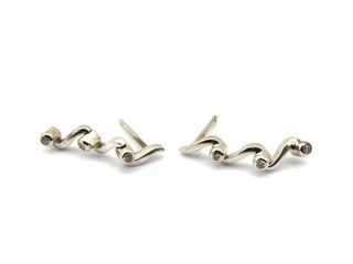 Elegantes pendientes de plata de ley. - Diseño moderno con detalles brillantes. - Cierre seguro para mayor comodidad.