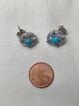 Sterling Silver Earrings with Cubic Zirconia and Blue Howlite Color: turquesa, transparente brillante y plata ✅ Estado: Nuevas 🔍Detalles: - Bolita central de howlita teñida azul y circonita de transparente brillante. - La montura es plata de ley 925 (tiene la inscripción en parte posterior). - Ideal para dar un toque de elegancia, delicadeza, color y luz a tus orejas - Tengo el colgante a juego y hago descuento si te llevas el conjunto. #accesorio #piedra #bisuteria #brillo #resplandor #relucir #plateado #sofisticado #cute #aesthetic #coquette #vintage #shiny #sparkling #radiant #elegante #chic #gema #piedra #preciosa