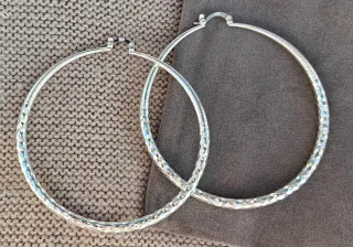 ♥️ ENVIO GRATIS en pedidos de más de 20 € (pregúntame y te lo activo por privado) Pendientes de Plata con sello de garantía S925, Diseño de aro grande, presentan un acabado facetado, lo que crea una textura irregular que maximiza el reflejo de la luz, dándoles un aspecto brillante y elegante. Combinan un diseño clásico con un toque moderno y geométrico, siendo un accesorio versátil. De construcción hueca, por lo que son ligeros y cómodos para su tamaño. Tamaño 7 cm. Se entregan presentados en bolsita de joyería, perfecto para regalo.