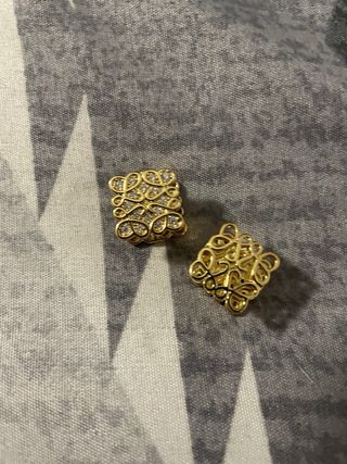 Preciosos pendientes de bisutería. Son dos pendientes de color dorado con detalles en marrón. - Diseño elegante y delicado. - Aretes con pequeñas piedras brillantes. - Perfectos para añadir un toque de brillo a tu look.