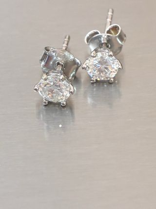 Preciosos Pendientes oro Blanco 18k Peso total 1.10 gramos Montados Con 6 Garras cada una Quilates totales 0.50 Ct +- Medidas 4mm Cada uno Forma brillante Grado VS/F Son unos precios pendientes Con unos destellos increibles,me encantan No pasarás desapercibida Ver fotos Se envía en Caja de Regalo y certificado Gracias💫