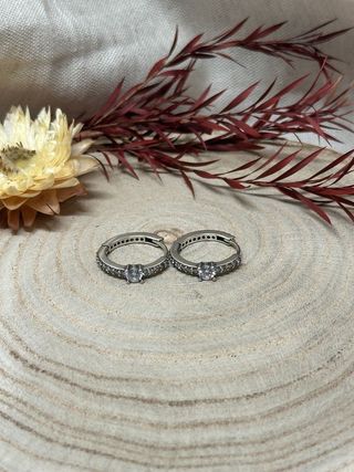 Elegantes pendientes de aro con incrustaciones de brillantes. Usados solo una vez. - Diseño tipo aro. - Acabado plateado.