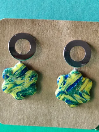 Conjunto de pendientes originales hechos a mano con arcilla polimérica, acero inoxidable y bañados con resina UV para un acabado brillante . Los cierres son de tuerca en acero inoxidable hipoalergénico variados. Enlaces también en acero inoxidable. El precio es por el lote completo de 5 pares!!! Sale la unidad por menos de tres euros!!! Ideal para tiendas!!!! Nuevos a estrenar!!!
