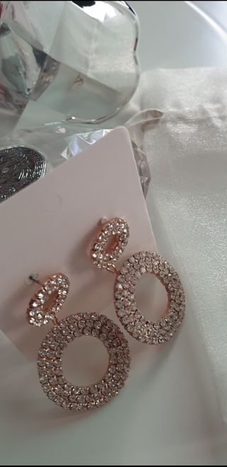 Déjate enamorar por este delicado conjunto de bisutería plateada con destellos que capturan la luz como estrellas. ✨ El collar está formado por elegantes círculos entrelazados con cristales brillantes, acompañados de unos pendientes a juego que realzan tu belleza natural. 🌹 Perfecto para una cena especial, una boda o simplemente para sentirte radiante en cualquier momento. Su diseño elegante y femenino combina a la perfección con cualquier estilo. 💎 📦 Estado: nuevo, sin uso 💍 Material: bisutería plateada con cristales tipo strass 📏 Largo del collar: 47cm Una joya que ilumina tu encanto. 💫 #joyas #bisutería #romántico