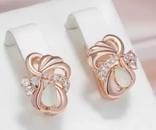 Elegantes pendientes con baño de oro rosa y detalles brillantes. - Diseño ovalado con piedra facetada. - Cierre de palanca seguro y cómodo.