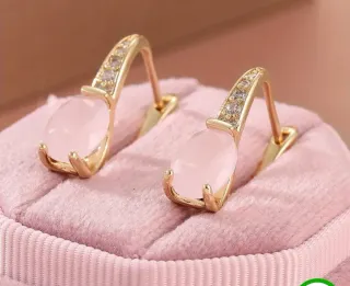 Elegantes pendientes de estilo vintage con baño de oro y detalles de circonitas. Un toque de distinción para cualquier ocasión. - Diseño ovalado con piedra rosa. - Baño de oro de alta calidad. - Acompañados de pequeñas circonitas brillantes.