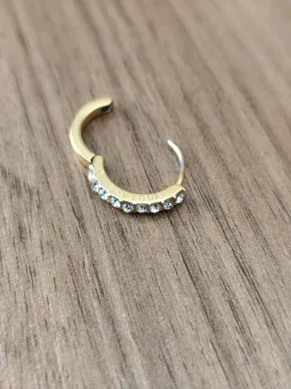 Elegante pendiente tipo aro con un diseño delicado y brillante. Perfecto para añadir un toque de luz a tu estilo. - Acabado en tono dorado. - Decorado con circonitas. - Cierre seguro y cómodo.