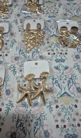 Conjunto de pendientes dorados de estilo maxi, disponibles en varios diseños. - Diseños variados para elegir. - Acabado metálico brillante.