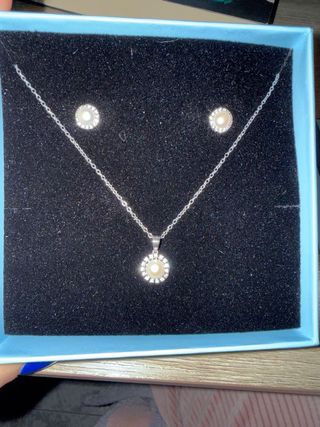 Vendo set de joyería: collar con colgante + pendientes de perlas de agua dulce auténticas, con acabado muy elegante y brillo bonito. • Plata de ley 925 • Detalles con circonitas/strass (efecto brillante) • Ideal para regalo y para ocasiones especiales