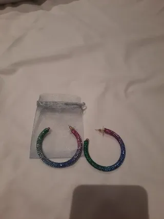 Pendientes tipo aro con un diseño lleno de brillo. - Acabado multicolor degradado. - Cierre de presión.