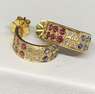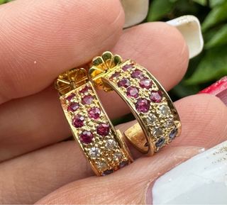 Pendientes oro 9K con diamantes y zafiros – 3,54 g Pendientes tipo aro en oro amarillo de 9 quilates (9K) con zafiros de color y diamantes. Diseño elegante y brillante, perfectos para uso diario o para regalo. 🔹 Material: Oro 9K 🔹 Piedras: Diamantes 8 unidades (total aprox. 0,08 ct) + zafiros (ver fotos) 🔹 Peso total: 3,54 g (foto con báscula) 🔹 Medida aprox.: 10,48 mm (foto con calibre) 🔹 Verificación: incluyo foto de análisis Goldscope/XRF, donde aparece Au ~37,35%, consistente con oro 9K. 📌 Estado: segunda mano, en muy buen estado.