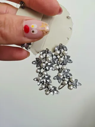 Elegantes pendientes con un diseño floral. Combinan perlas y cristales para un toque de brillo. - Diseño de hojas y flores. - Adornados con perlas. - Detalles de cristales brillantes. -Se enganchan tambien en la parte de arriba por lo que ocupan la oreja.