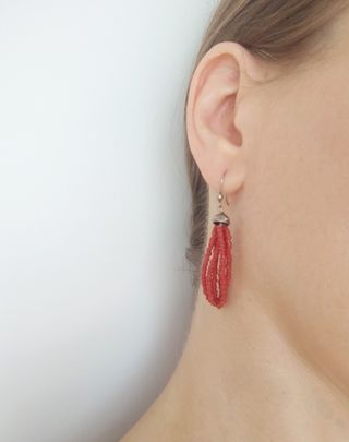 Preciosos aretes hechos a mano. Son dos aretes de aro de plata con cuentas de coral rojo. Las cuentas presentan distintos tonos de rojo y algunas tienen pequeñas imperfecciones que les dan un toque único. Ideales para añadir un toque de color a tu look. - Aros de plata. - Cuentas de coral rojo. - Diseño artesanal. 4cmx3'5cm