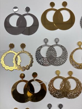 Pendientes de acero inoxidable con diseño inspirado en la moda flamenca. Son un accesorio llamativo y elegante. - Fabricados en acero inoxidable. - Diseño circular con detalles calados. - Cierre de presión para mayor seguridad. Cada unidad 15€
