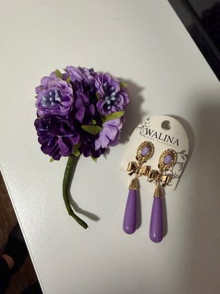 Pendientes Fiesta Madrinas Eventos Morado Amarillo