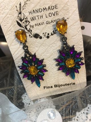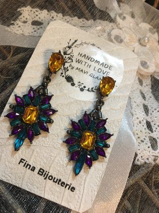 Elegantes pendientes ideales para fiestas, bodas o eventos especiales. Su diseño llamativo y los detalles de pedrería en cristal los hacen únicos. - Diseño floral con piedras de cristal. - Colgante con forma de lágrima. - Cierre de presión. sin estrenar absoluta higiene, Ideales para Romería Flamencas Falleras sanIsidro San Valentin entrego con su bolsita de joyería