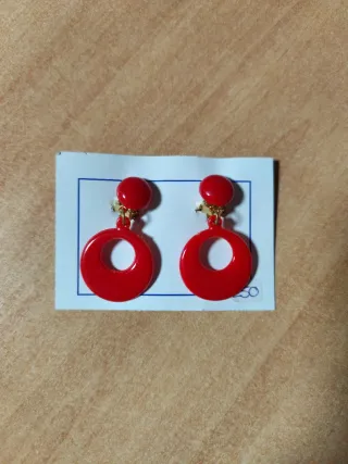 Pendientes de estilo flamenco en llamativo color rojo. Son un accesorio perfecto para añadir un toque de color y estilo a cualquier atuendo. - Diseño colgante con dos piezas. - Acabado brillante.