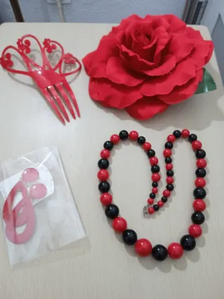 Conjunto de flamenca compuesto por flor, peina, collar y pendientes Los pendientes y la flor son nuevos a estrenar