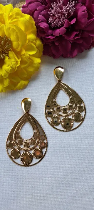 Pendientes de estilo flamenco con un diseño elegante y llamativo. - Acabado en dorado. - Diseño calado con motivos