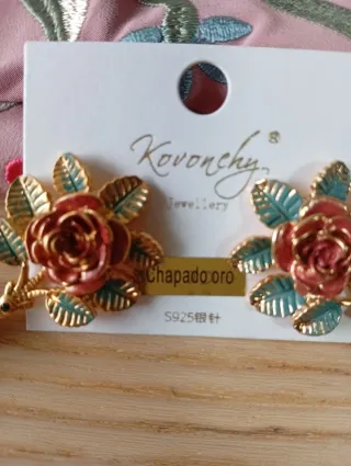 Pendientes flamenca oro rosa flores