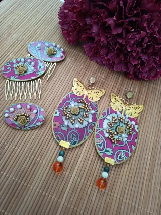 Conjunto pendientes y 2 broches flamenca