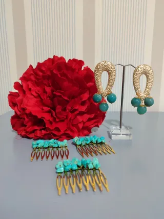 Conjunto Flamenco: Flores, Peinetas y Pendientes