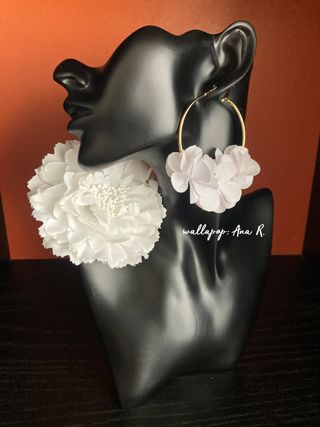 Este lote incluye: 🌹 Pendientes de aro dorados con petalos de tela blancos. El aro mide 5.5 cms de diametro. 🌹 Flor blanca de 11 cms de ancho, con pinza para colocar en el cabello y aguja para poner en la ropa. Todo nuevo a estrenar. #complementos #flamenca #flamenco #sevillanas #feria #feriadeabril #feriadeprimavera #feriadesevilla #romeria #gitana