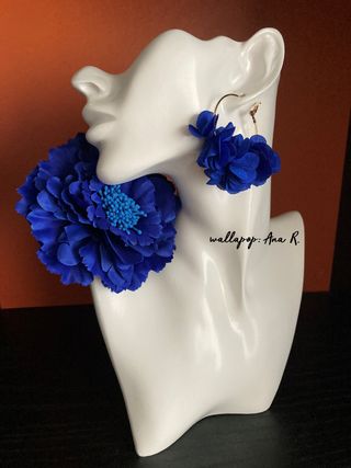 Lote de flamenca que incluye: 💙 Pendientes de aro dorado pequeño con petalos de tela en color azul real. El diametro del aro mide 3.5 cms. 💙 Flor de 11 cms de ancho en color azul real, con pinza para colocar en el cabello y aguja para poner en la ropa. Todo nuevo a estrenar. #complementos #flamenca #flamenco #sevillanas #feria #feriadeabril #feriadeprimavera #feriadesevilla #romeria #gitana