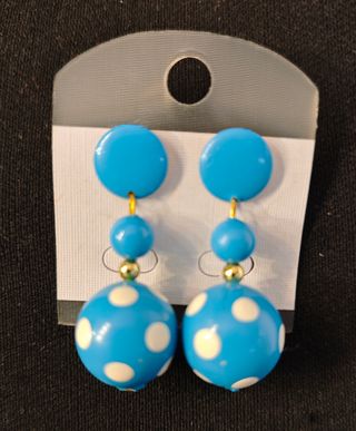 Bonitos pendientes para flamenca. Color azul con lunares blancos. Cierre con tuerca, cómodo y seguro. No pesan.Sin estrenar.Ideal para niña.Muy originales. Pintado a mano.