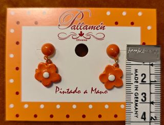 Bonitos pendientes para flamenca. Color naranja con centro flor en blanco . Cierre con tuerca, cómodo y seguro. No pesan.Sin estrenar.Ideal para niña.Muy originales. Pintado a mano.