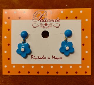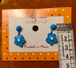 Bonitos pendientes para flamenca. Color azul con centro flor en blanco . Cierre con tuerca, cómodo y seguro. No pesan.Sin estrenar.Ideal para niña.Muy originales. Pintado a mano.