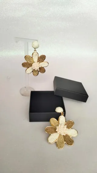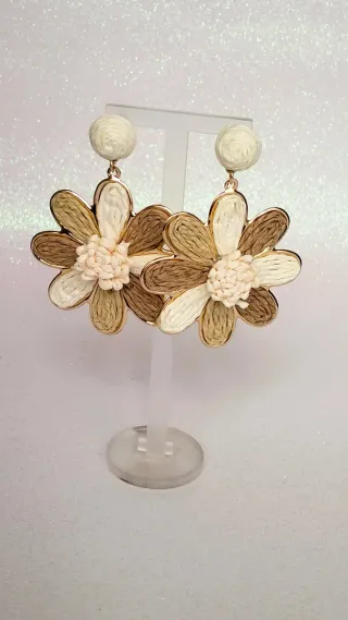 Pendientes flor XXL beige y dorado estilo boho chic. Miden 9 cm de largo, ligeros y muy llamativos. Perfectos para invitadas, eventos, verano o para dar un toque natural y elegante a cualquier look. 💥Mide 7,5 cm 💥Si te gusta, háblame,vale? #flamenca #fiesta #pendientes